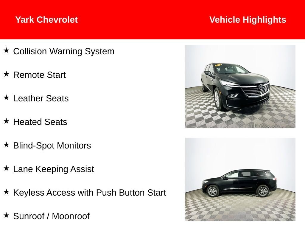 Certified. Recent Arrival! 2024 Ebony Twilight Metallic Buick Enclave Essence 3.6L V6 SIDI VVT Collision Warning System, Remote Start, Leather Seats, Heated Seats, Blind-Spot Monitors, Lane Keeping Assist, Keyless Access with Push Button Start, Sunroof / Moonroof, Power Programmable Liftgate, 20 Polished Aluminum Wheels, 3rd row seats: split-bench, 5,000 lbs Trailering Package, Automatic temperature control, Experience Buick Package, Front Power Sliding Moonroof, Fully automatic headlights, Heated front seats, Hitch Guidance, Hitch Guidance w/Hitch View, Perforated Leather-Appointed Seat Trim, Power Liftgate, Preferred Equipment Group 1SL, Premium audio system: Buick Infotainment System, Rear air conditioning, Remote keyless entry, Wireless Apple CarPlay/Wireless Android Auto.Priced below KBB Fair Purchase Price! Clean CARFAX. CARFAX One-Owner. 18/26 City/Highway MPGCertification Program Details: This vehicle is part of GMâs CarBravo® program meaning you get certified inspection and reconditioning, a standard GM-backed limited warranty, roadside assistance, and access to the nationwide GM service network. Choose with confidence. Ask us about full CarBravo benefits. ? Comprehensive Multi-Point Inspection & Reconditioning Every CarBravo vehicle meets GM standards for quality and reliability. ? GM-Backed Limited Warranty Includes a 6-month/6,000-mile bumper-to-bumper limited warranty (or 30-day/1,000-mile for BravoBudget vehicles). ? Roadside Assistance & Courtesy Transportation Coverage during the warranty period for added confidence. ? Vehicle Exchange Program If itâs not the right fit, exchange it within 10 days or 500 miles. ? Transparent Vehicle History Every CarBravo vehicle includes a free vehicle history report and clear, upfront pricing. ? Nationwide GM Service Network Access professional service and warranty support at thousands of GM dealerships. ? Complimentary Trials Eligible vehicles include a 1-month OnStar® trial and 3-month SiriusXM® subscription. Buy with confidence this CarBravo® vehicle from Yark Automotive Group includes a GM-backed limited warranty, multi-point inspection, roadside assistance, and vehicle exchange program. ? Certified quality. ? Transparent pricing. ? Nationwide GM service support. CarBravo by Yark Certified. Backed by GM. Driven by You.Shop Smarter with Yark Automotive! Yark makes car buying easy with Live Market Pricing updated hourly from over 20,000 sites to ensure you get a real-time, fair market price on every pre-owned vehicle. No games, no inflated prices just transparent, competitive value from a dealership trusted for 40+ years. With 12 brands and 8 convenient locations across NW Ohio & SE Michigan, Yark offers the largest new and used inventory in the region making it easy to find exactly what youâre looking for! Buy with confidence from the regionâs #1 volume new & used automotive group for 28+ years!