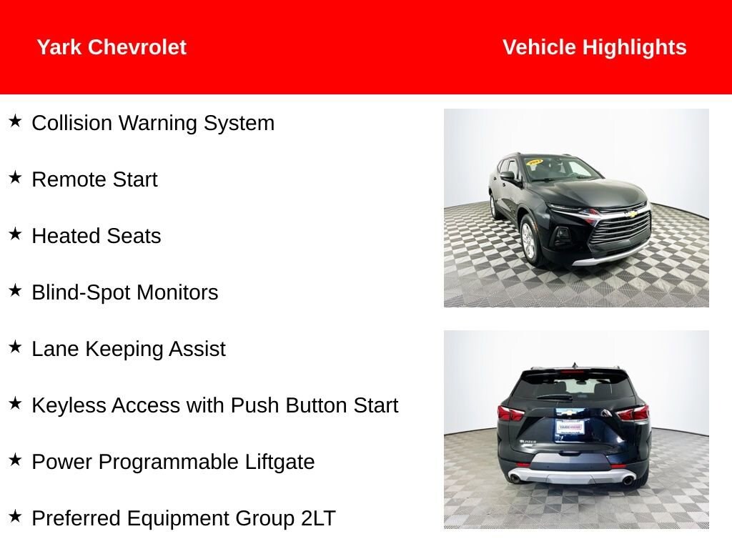 Certified. 2022 Black Chevrolet Blazer LT 2.0L Turbocharged Collision Warning System, Remote Start, Heated Seats, Blind-Spot Monitors, Lane Keeping Assist, Keyless Access with Push Button Start, Power Programmable Liftgate, Apple CarPlay/Android Auto, Automatic temperature control, Convenience & Driver Confidence Package, Exterior Parking Camera Rear, Heated Front Seats, Lane Change Alert w/Side Blind Zone Alert, Preferred Equipment Group 2LT, Premium Cloth Seat Trim, Rear Cross Traffic Alert, Rear Park Assist w/Audible Warning, Rear Power Programmable Liftgate, Remote keyless entry, Remote Start, Universal Home Remote, Wheels: 18 Bright Silver Aluminum.