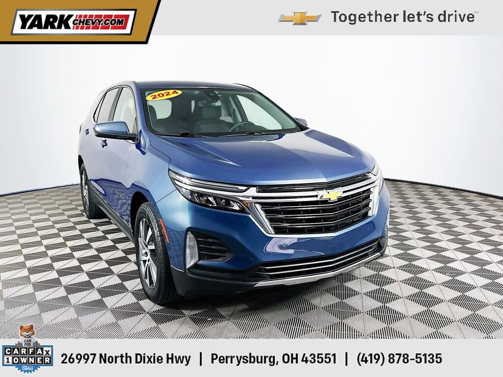 Certified. 2024 Lakeshore Blue Metallic Chevrolet Equinox LT 1.5L DOHC Collision Warning System, Remote Start, Heated Seats, Blind-Spot Monitors, Lane Keeping Assist, Keyless Access with Push Button Start, *New Tires*, Power Programmable Liftgate, 18 Aluminum Wheels, Automatic temperature control, Heated Front Seats, Power Liftgate, Preferred Equipment Group 1LT, Premium audio system: Chevrolet Infotainment 3, Premium Cloth Seat Trim, Remote keyless entry.Clean CARFAX. CARFAX One-Owner. 26/31 City/Highway MPGCertification Program Details: This vehicle is part of GMâs CarBravo® program meaning you get certified inspection and reconditioning, a standard GM-backed limited warranty, roadside assistance, and access to the nationwide GM service network. Choose with confidence. Ask us about full CarBravo benefits. ? Comprehensive Multi-Point Inspection & Reconditioning Every CarBravo vehicle meets GM standards for quality and reliability. ? GM-Backed Limited Warranty Includes a 6-month/6,000-mile bumper-to-bumper limited warranty (or 30-day/1,000-mile for BravoBudget vehicles). ? Roadside Assistance & Courtesy Transportation Coverage during the warranty period for added confidence. ? Vehicle Exchange Program If itâs not the right fit, exchange it within 10 days or 500 miles. ? Transparent Vehicle History Every CarBravo vehicle includes a free vehicle history report and clear, upfront pricing. ? Nationwide GM Service Network Access professional service and warranty support at thousands of GM dealerships. ? Complimentary Trials Eligible vehicles include a 1-month OnStar® trial and 3-month SiriusXM® subscription. Buy with confidence this CarBravo® vehicle from Yark Automotive Group includes a GM-backed limited warranty, multi-point inspection, roadside assistance, and vehicle exchange program. ? Certified quality. ? Transparent pricing. ? Nationwide GM service support. CarBravo by Yark Certified. Backed by GM. Driven by You.Shop Smarter with Yark Automotive! Yark makes car buying easy with Live Market Pricing updated hourly from over 20,000 sites to ensure you get a real-time, fair market price on every pre-owned vehicle. No games, no inflated prices just transparent, competitive value from a dealership trusted for 40+ years. With 12 brands and 8 convenient locations across NW Ohio & SE Michigan, Yark offers the largest new and used inventory in the region making it easy to find exactly what youâre looking for! Buy with confidence from the regionâs #1 volume new & used automotive group for 28+ years!