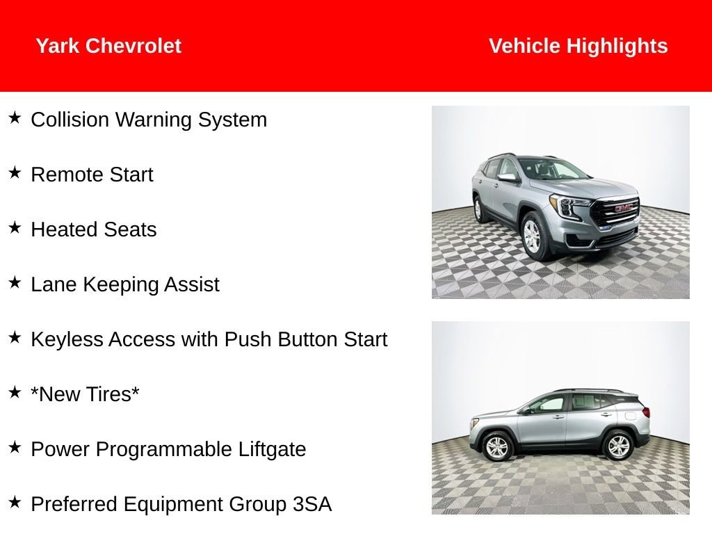 Certified. 2023 Sterling Metallic GMC Terrain SLE 1.5L DOHC Collision Warning System, Remote Start, Heated Seats, Lane Keeping Assist, Keyless Access with Push Button Start, *New Tires*, Power Programmable Liftgate, AWD, Driver & Front Passenger Heated Seats, Driver Convenience Package, Dual-Zone Automatic Climate Control, Front Bucket Seats, Fully automatic headlights, Power Programmable Rear Liftgate, Preferred Equipment Group 3SA, Premium Cloth Seat Trim, Remote keyless entry, Remote Start, Wheels: 17 x 7 Silver Painted Aluminum, Wireless Apple CarPlay/Wireless Android Auto.Priced below KBB Fair Purchase Price! Clean CARFAX. CARFAX One-Owner. 24/28 City/Highway MPGCertification Program Details: This vehicle is part of GMâs CarBravo® program meaning you get certified inspection and reconditioning, a standard GM-backed limited warranty, roadside assistance, and access to the nationwide GM service network. Choose with confidence. Ask us about full CarBravo benefits. ? Comprehensive Multi-Point Inspection & Reconditioning Every CarBravo vehicle meets GM standards for quality and reliability. ? GM-Backed Limited Warranty Includes a 6-month/6,000-mile bumper-to-bumper limited warranty (or 30-day/1,000-mile for BravoBudget vehicles). ? Roadside Assistance & Courtesy Transportation Coverage during the warranty period for added confidence. ? Vehicle Exchange Program If itâs not the right fit, exchange it within 10 days or 500 miles. ? Transparent Vehicle History Every CarBravo vehicle includes a free vehicle history report and clear, upfront pricing. ? Nationwide GM Service Network Access professional service and warranty support at thousands of GM dealerships. ? Complimentary Trials Eligible vehicles include a 1-month OnStar® trial and 3-month SiriusXM® subscription. Buy with confidence this CarBravo® vehicle from Yark Automotive Group includes a GM-backed limited warranty, multi-point inspection, roadside assistance, and vehicle exchange program. ? Certified quality. ? Transparent pricing. ? Nationwide GM service support. CarBravo by Yark Certified. Backed by GM. Driven by You.Shop Smarter with Yark Automotive! Yark makes car buying easy with Live Market Pricing updated hourly from over 20,000 sites to ensure you get a real-time, fair market price on every pre-owned vehicle. No games, no inflated prices just transparent, competitive value from a dealership trusted for 40+ years. With 12 brands and 8 convenient locations across NW Ohio & SE Michigan, Yark offers the largest new and used inventory in the region making it easy to find exactly what youâre looking for! Buy with confidence from the regionâs #1 volume new & used automotive group for 28+ years!