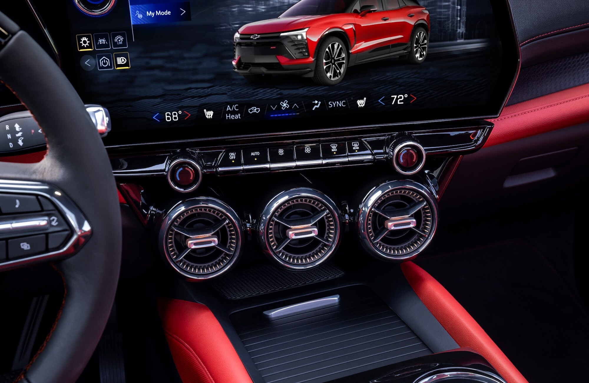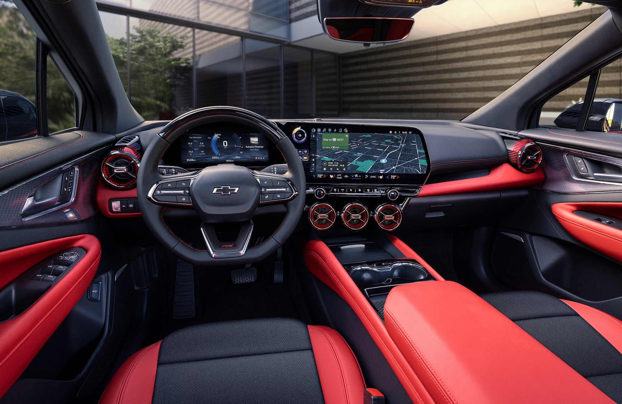 The Blazer EV's standard 17.7-inch touchscreen gives you intuitive control over your favorite apps and media. Available wireless charging keeps your devices powered up without the clutter of cords. RS and SS trims treat audiophiles to an immersive Bose premium eight-speaker system. Take your driving experience to new heights with the RS Convenience and Driver Confidence package, featuring a full-color head-up display, rear camera mirror, and more.