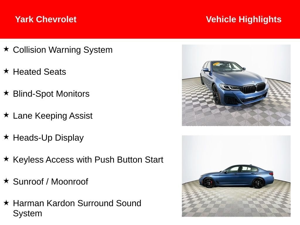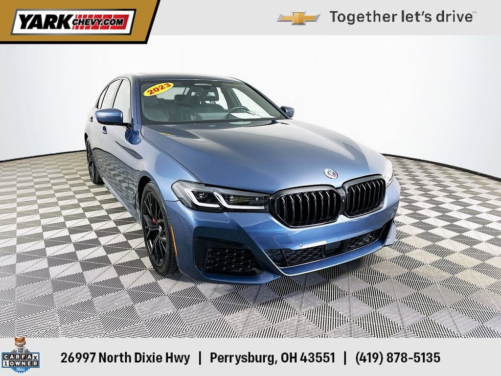 2023 Arctic Race Blue Metallic BMW 5 Series M550i xDrive 4.4L V8 Twin Turbocharged Collision Warning System, Heated Seats, Blind-Spot Monitors, Lane Keeping Assist, Heads-Up Display, Keyless Access with Push Button Start, Sunroof / Moonroof, Harman Kardon Surround Sound System, Active Park Distance Control, Adaptive suspension, Apple CarPlay & Android Auto Compatibility, Automatic temperature control, Ceramic Controls, Connected Package Pro, Executive Package, Front & Rear Heated Seats, harman/kardon Surround Sound System, Head-Up Display, Heated Steering Wheel, Live Cockpit Pro, M Shadowline Lights, Memory seat, Nappa Leather Upholstery, Navigation System, Parking Assistant Plus, Power moonroof, Power Rear Sunshade & Rear Side Window Shades, Rear-View Camera, Remote keyless entry, Steering wheel memory, Surround View w/3D View, Wheels: 19 x 8 Fr & 19 x 9 Rr M Y-Spoke Bi-Color, Wireless Charging.