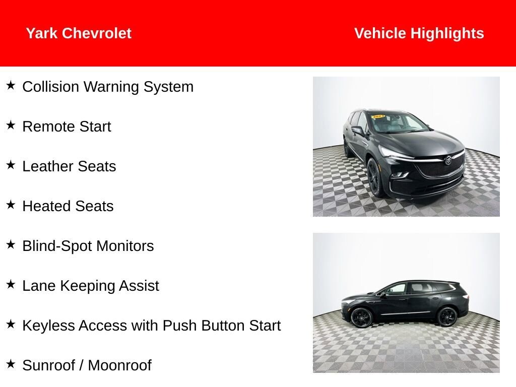 Certified. 2023 Ebony Twilight Metallic Buick Enclave Essence 3.6L V6 SIDI VVT Collision Warning System, Remote Start, Leather Seats, Heated Seats, Blind-Spot Monitors, Lane Keeping Assist, Keyless Access with Push Button Start, Sunroof / Moonroof, Power Programmable Liftgate, Automatic temperature control, Experience Buick Package, Front & Rear Park Assist, Front Power Sliding Moonroof, Fully automatic headlights, Heated Steering Wheel, Perforated Leather-Appointed Seat Trim, Power Liftgate, Preferred Equipment Group 1SL, Remote keyless entry, Sport Touring Edition, Sport Touring Liftgate Badging, Unique Sport Grille w/Body-Color Surround, Wheels: 20 Gloss Black, Wireless Apple CarPlay/Wireless Android Auto.Priced below KBB Fair Purchase Price! Clean CARFAX. CARFAX One-Owner. 18/26 City/Highway MPGCertification Program Details: This vehicle is part of GMâs CarBravo® program meaning you get certified inspection and reconditioning, a standard GM-backed limited warranty, roadside assistance, and access to the nationwide GM service network. Choose with confidence. Ask us about full CarBravo benefits. ? Comprehensive Multi-Point Inspection & Reconditioning Every CarBravo vehicle meets GM standards for quality and reliability. ? GM-Backed Limited Warranty Includes a 6-month/6,000-mile bumper-to-bumper limited warranty (or 30-day/1,000-mile for BravoBudget vehicles). ? Roadside Assistance & Courtesy Transportation Coverage during the warranty period for added confidence. ? Vehicle Exchange Program If itâs not the right fit, exchange it within 10 days or 500 miles. ? Transparent Vehicle History Every CarBravo vehicle includes a free vehicle history report and clear, upfront pricing. ? Nationwide GM Service Network Access professional service and warranty support at thousands of GM dealerships. ? Complimentary Trials Eligible vehicles include a 1-month OnStar® trial and 3-month SiriusXM® subscription. Buy with confidence this CarBravo® vehicle from Yark Automotive Group includes a GM-backed limited warranty, multi-point inspection, roadside assistance, and vehicle exchange program. ? Certified quality. ? Transparent pricing. ? Nationwide GM service support. CarBravo by Yark Certified. Backed by GM. Driven by You.Shop Smarter with Yark Automotive! Yark makes car buying easy with Live Market Pricing updated hourly from over 20,000 sites to ensure you get a real-time, fair market price on every pre-owned vehicle. No games, no inflated prices just transparent, competitive value from a dealership trusted for 40+ years. With 12 brands and 8 convenient locations across NW Ohio & SE Michigan, Yark offers the largest new and used inventory in the region making it easy to find exactly what youâre looking for! Buy with confidence from the regionâs #1 volume new & used automotive group for 28+ years!