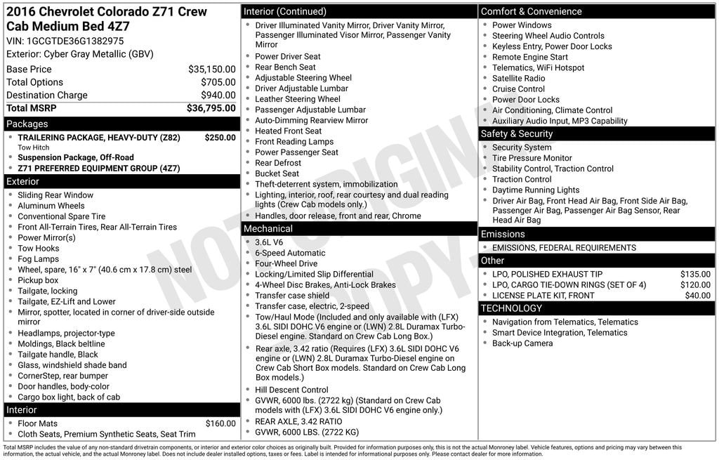Recent Arrival! 2016 Cyber Gray Metallic Chevrolet Colorado Z71 3.6L V6 DGI DOHC VVT Apple CarPlay, Automatic temperature control, Exterior Parking Camera Rear, Fully automatic headlights, Heavy-Duty Trailering Package, Power driver seat, Remote keyless entry, Steering wheel mounted audio controls.