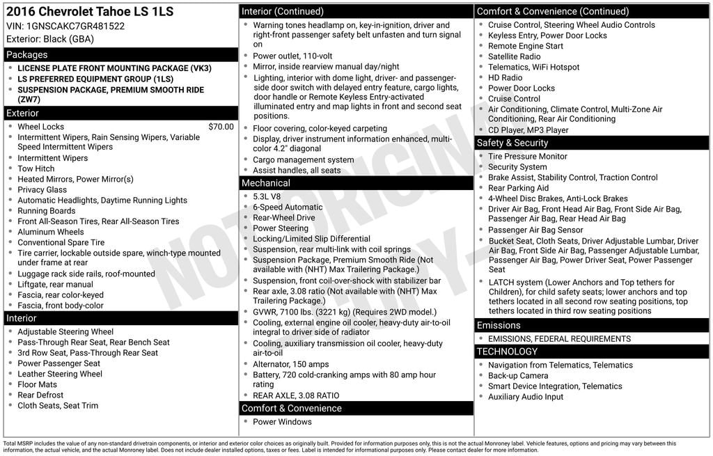 Used W260214A 2016 ChevroletTahoe LS SUV