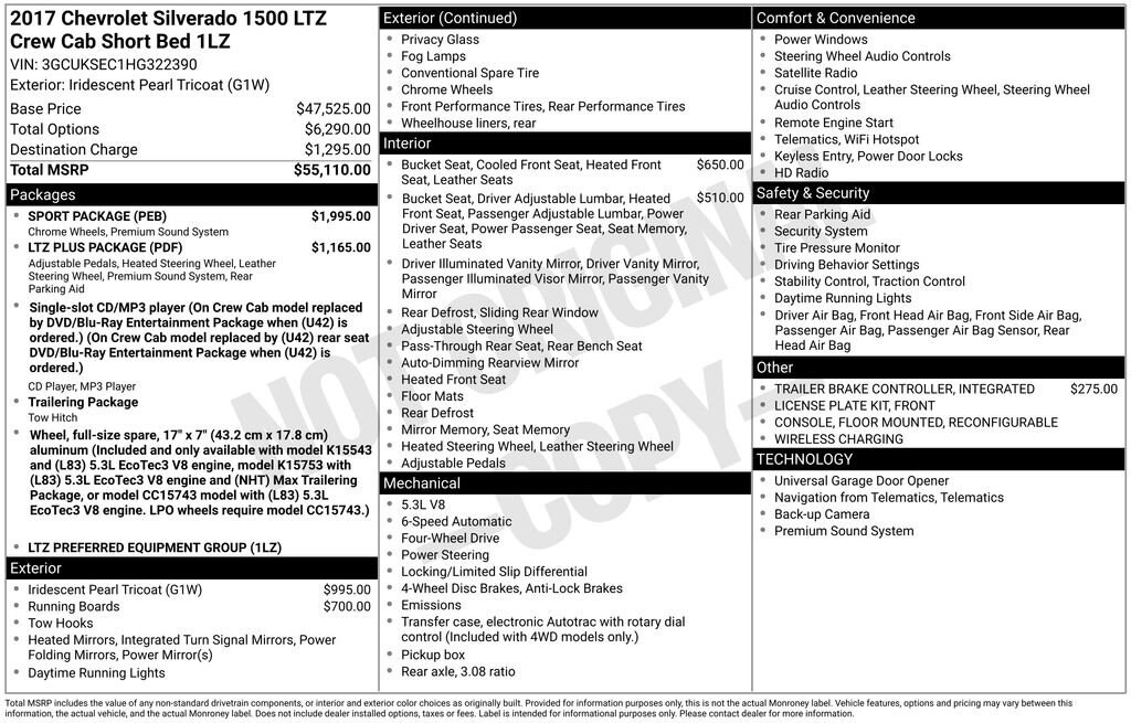 Recent Arrival! 2017 Iridescent Pearl Tricoat Chevrolet Silverado 1500 LTZ EcoTec3 5.3L V8 *Local Trade*, Exterior Parking Camera Rear, Heated Front Seats, Integrated Trailer Brake Controller, Power door mirrors, Remote Locking Tailgate, Remote Vehicle Starter System.
