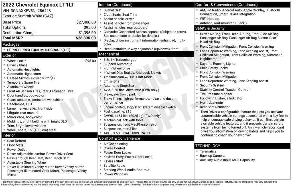 Certified. Recent Arrival! 2022 Summit White Chevrolet Equinox LT 1.5L DOHC Collision Warning System, Lane Keeping Assist, Keyless Access with Push Button Start, 17 Aluminum Wheels, Fully automatic headlights, Preferred Equipment Group 1LT, Remote keyless entry, Wireless Apple CarPlay/Wireless Android Auto.