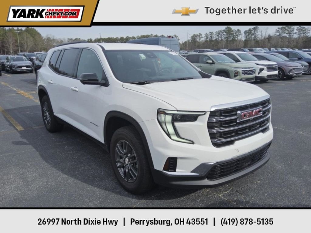 Recent Arrival! 2025 Summit White GMC Acadia Elevation 2.5L DOHC Collision Warning System, Remote Start, Adaptive Cruise Control, Heated Seats, Blind-Spot Monitors, Keyless Access with Push Button Start, Power Programmable Liftgate, AWD, 8-Passenger Seating (2-3-3 Seating Configuration), 8-Way Power Driver Seat Adjuster, Alloy wheels, Apple CarPlay/Android Auto, Automatic temperature control, Bose Premium 12-Speaker System with Sub-Woofer, Exterior Parking Camera Rear, Heated front seats, Heated steering wheel, Navigation System, Power Liftgate, Preferred Equipment Group 4SD, Remote keyless entry.Clean CARFAX. CARFAX One-Owner. Odometer is 1206 miles below market average!Shop Smarter with Yark Automotive! Yark makes car buying easy with Live Market Pricing updated hourly from over 20,000 sites to ensure you get a real-time, fair market price on every pre-owned vehicle. No games, no inflated prices just transparent, competitive value from a dealership trusted for 40+ years. With 12 brands and 8 convenient locations across NW Ohio & SE Michigan, Yark offers the largest new and used inventory in the region making it easy to find exactly what youâre looking for! Buy with confidence from the regionâs #1 volume new & used automotive group for 28+ years!