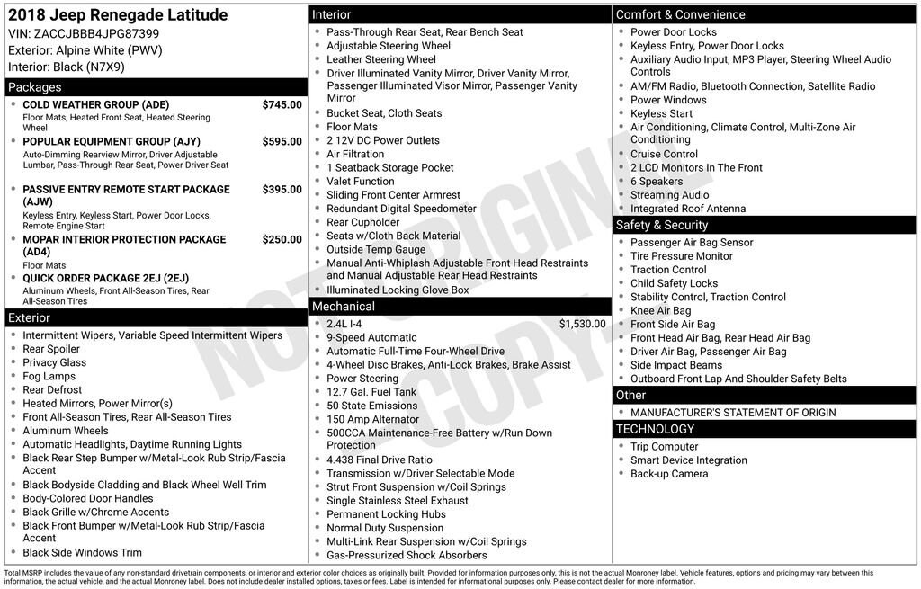 Don't let this opportunity pass you by. Experience the perfect blend of style, capability, and convenience with the 2018 Jeep Renegade Latitude. Visit our showroom today and let us help you discover the vehicle of your dreams.
