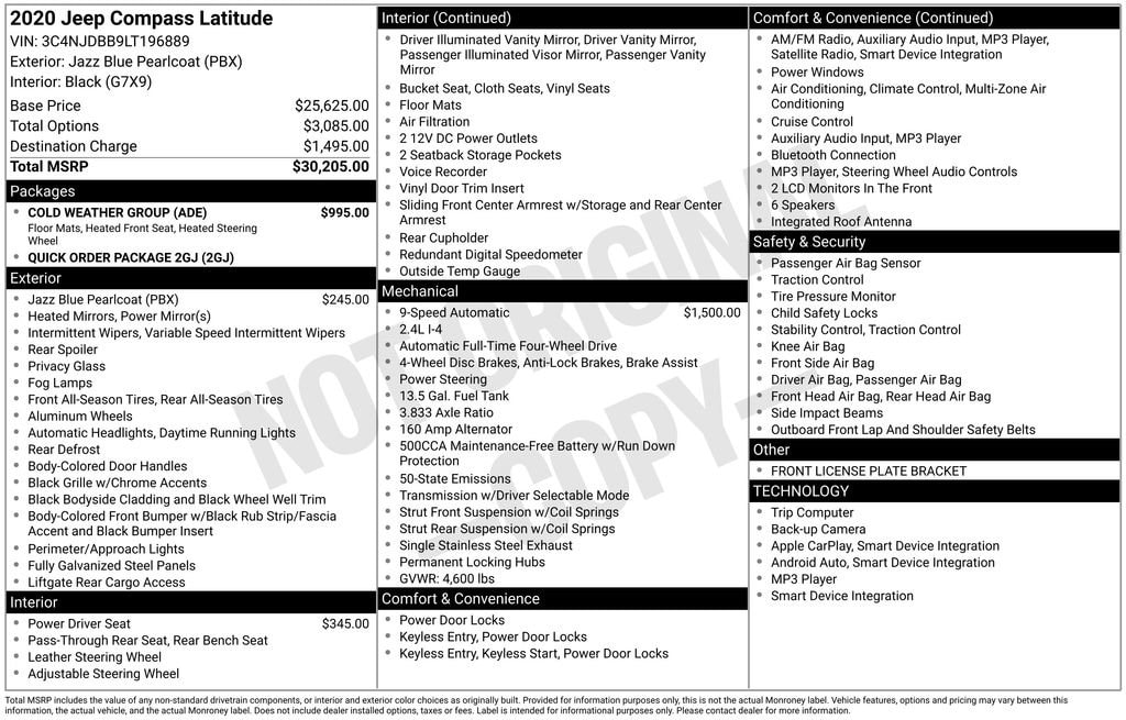Used WP6722A 2020 JeepCompass Latitude 4x4 Sport Utility
