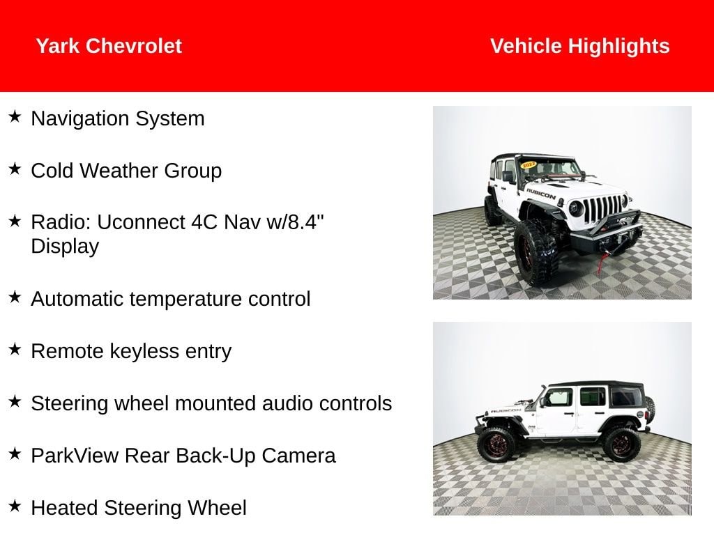 Boasting a powerful 3.6L V6 engine paired with an 8-speed automatic transmission, the Wrangler Unlimited Rubicon delivers impressive performance and exceptional 4WD capability. Equipped with a host of premium features, this Wrangler is designed to elevate your driving experience: